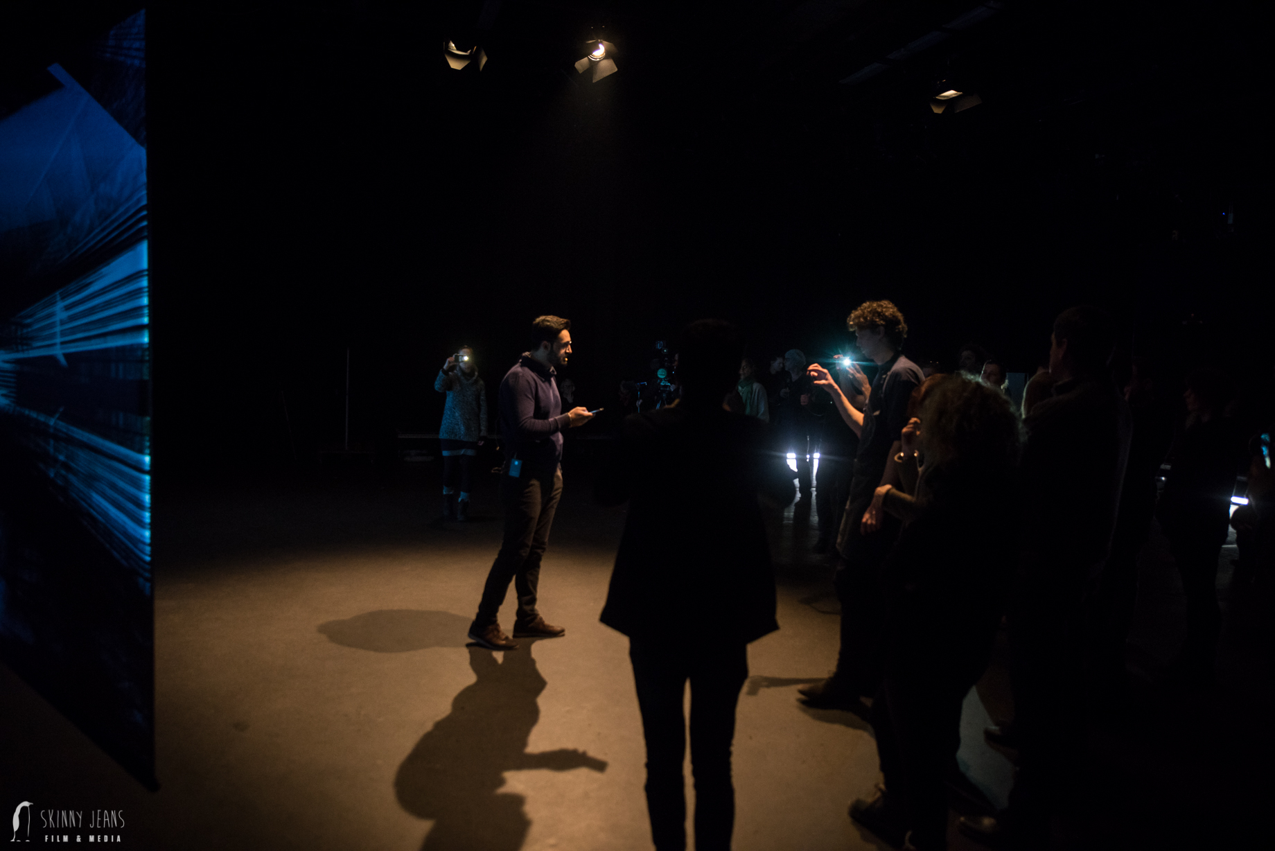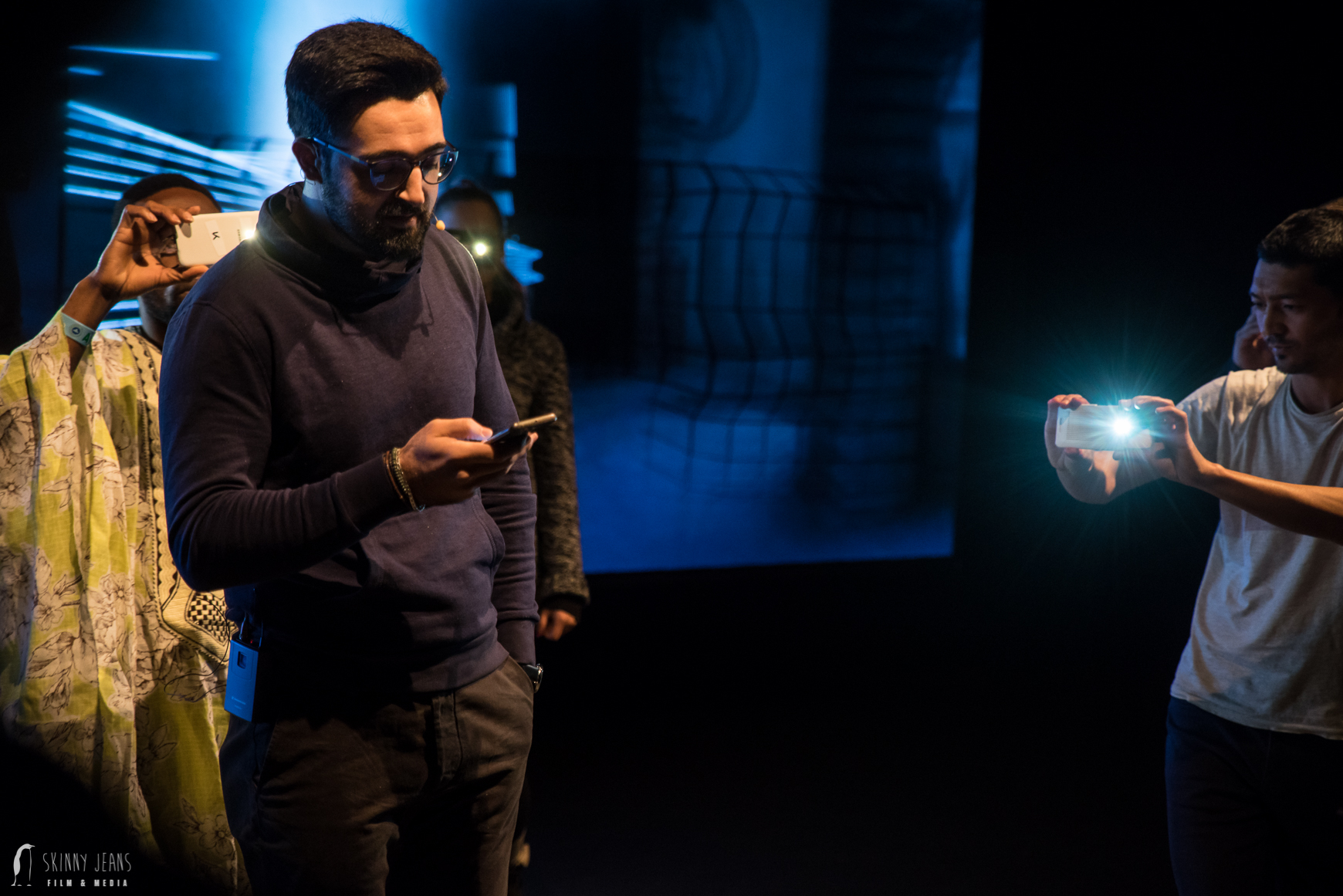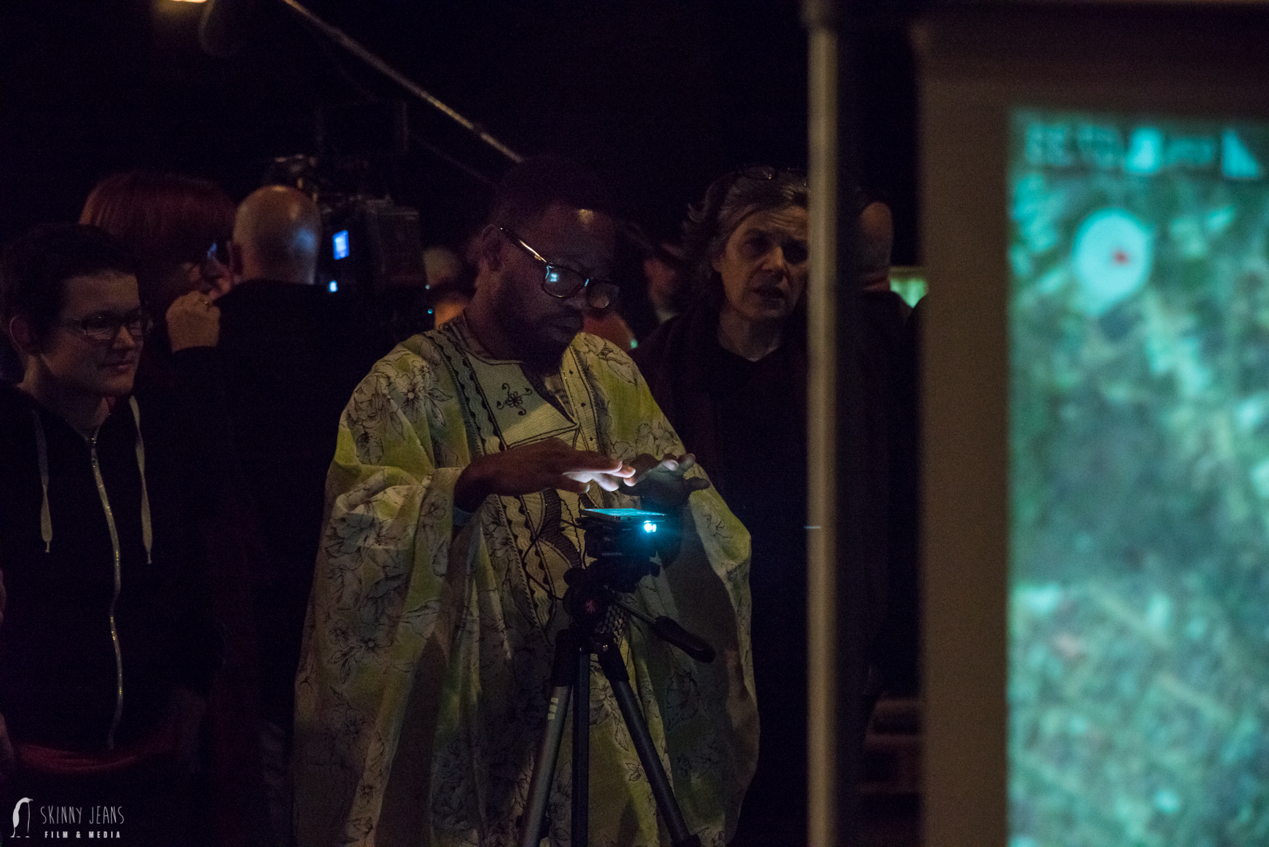 “Every narration celebrates a public anonymity which, through the temporal extension in video and sound, becomes the vivid moment of intimate attention. The superimposition of real stories and videos, coupled with audio material condensed into composition, the archive material from mobile phones and the portrayal of digital data-flows that are not perceptible to the human eye come into the audio-visual installation. Personal data saved in the participants’ smartphones as well as the results of performatively staged discussions are the material for artistic analysis that use deconstruc- tions to explore increasingly fluid identities. A mobile phone can tell stories. What stories can your mobile phone tell? There are collections of images, videos and sounds in chat and social media apps that represent personal descriptions of the users, and formulate identities. Sounds and images form the landscapes of personal memory that are translated into narrated maps. “Key agendas” are the family, occupation, spare time, travel and sudden upheavals that have triggered radical changes in living conditions. But also individual objects, such as tools or a passport, play extraordinary roles. Differences become obvious; what is self-evident for one person may be the absolute object of desire for another. The public portrayal and its attestation by a present collective opens spaces for self-empow- erment, supported as a shared artistic ritual; the work of grieving just as much as the exploration of new social environments.”