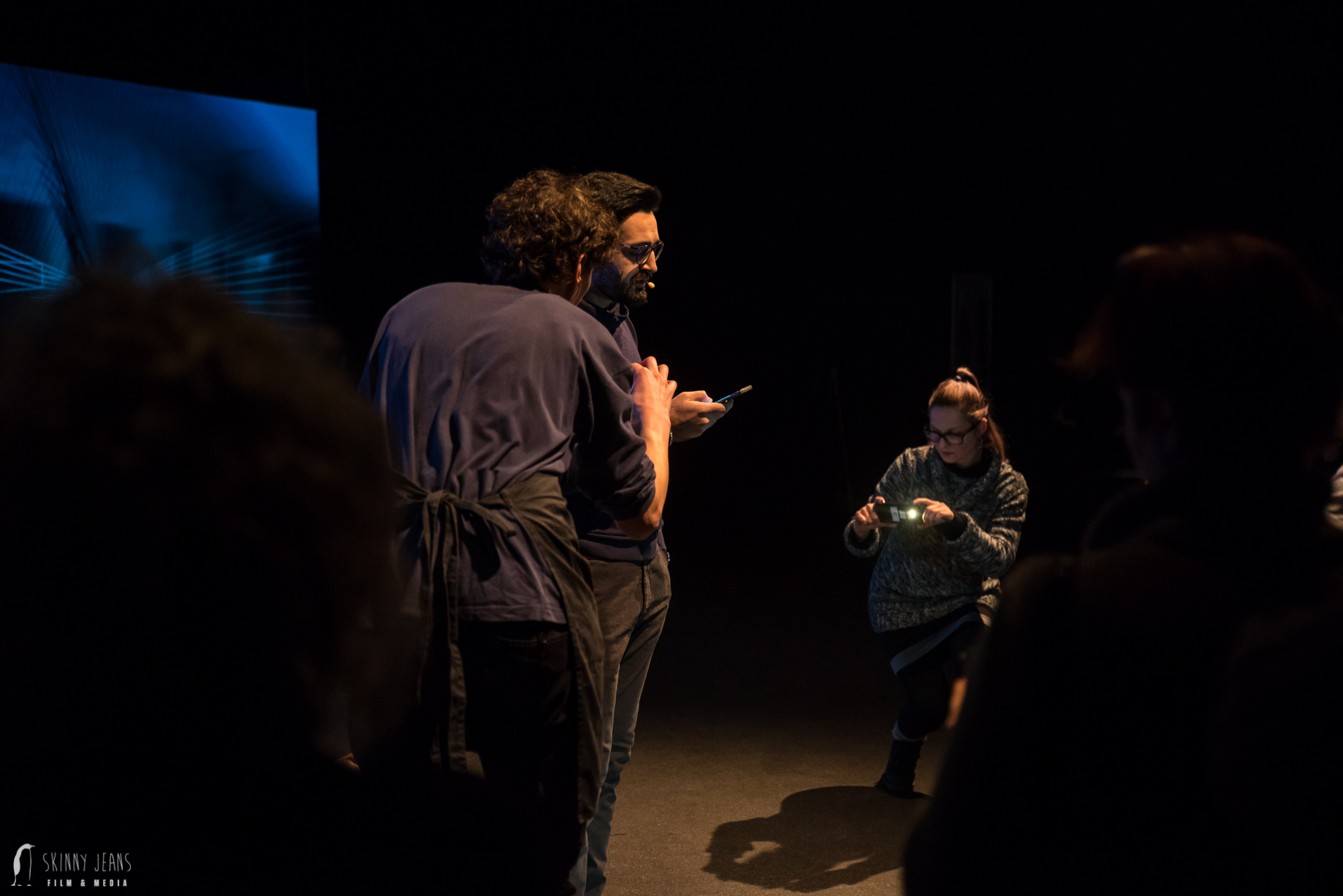 Welche Geschichten kann (d)ein Mobiltelefon erzählen? mobile stories begann als Performance Projekt in der improvisierten Kantine eines Flüchtlingsheimes, als Projekt, das sich mit den Beziehungen von Körper und Gadgets sowie der Repräsentation des digitalen „Self“ in sozialen Medien auseinandersetzte. Das Mobiltelefon, als Technologie aus dem Mainstream in den Mittelpunkt eines performativen Settings geholt, wird verwendet als Kompass, Richtungsanzeiger, Erinnerungshilfe, Fotoalbum, Videoarchiv, Übersetzungscomputer, Statussymbol. So entstehen Szenen, Geschichten und Choreographien.