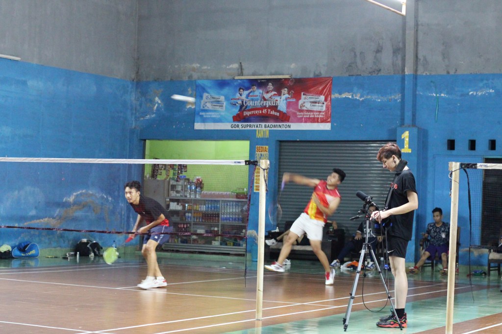 I talked to many different people and did some interviews but mainly I was focusing on the different soundscapes and noises of badminton halls. As it was raining season it was a very specific and very noisy experience. Badminton gymnasiums can be found in any imaginable size in Jogjakarta. I found myself very often standing underneath a roof of white noise, being sure to understand better why there is such a brilliant “Noise Music Scene” in Jogjakarta. Heavy rain was falling onto mainly iron roofs and the acoustic of the gymnasiums quite often changed dramatically. I did many recordings in hypercardioid and cardioid mode from a very close distance standing at corner points of the courts and from a more distant position recording from stands.